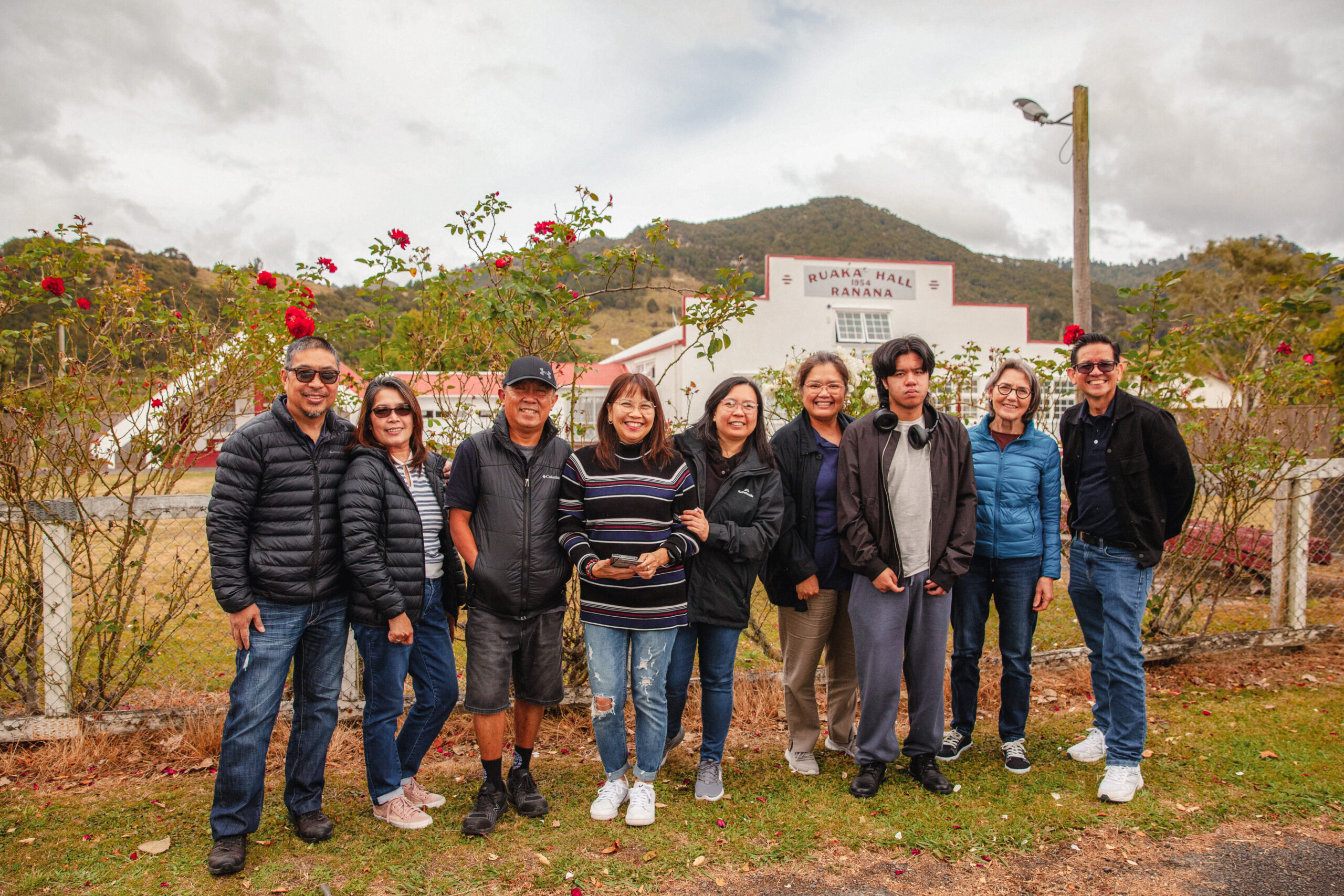 After a winding 66-kilometre drive, the pilgrims finally arrived at Hiruhārama. The spiritual highlight of the day was the celebration of Mass at St Joseph’s Church, led by Bishop John Adams, marking his first time celebrating Mass at this sacred site. The pilgrims were warmly welcomed by Sr Lusiana DOLC, Sr Litia DOLC, and Karen Coleman, a Friend of Suzanne Aubert. The sisters sang a moving rendition of With Our Mother Aubert, a song of prayer written by Father Chris Skinner SM, incorporating Mother Suzanne Aubert’s poem of gratitude to God: “Thanks be to God for all he has done and is doing for us.”