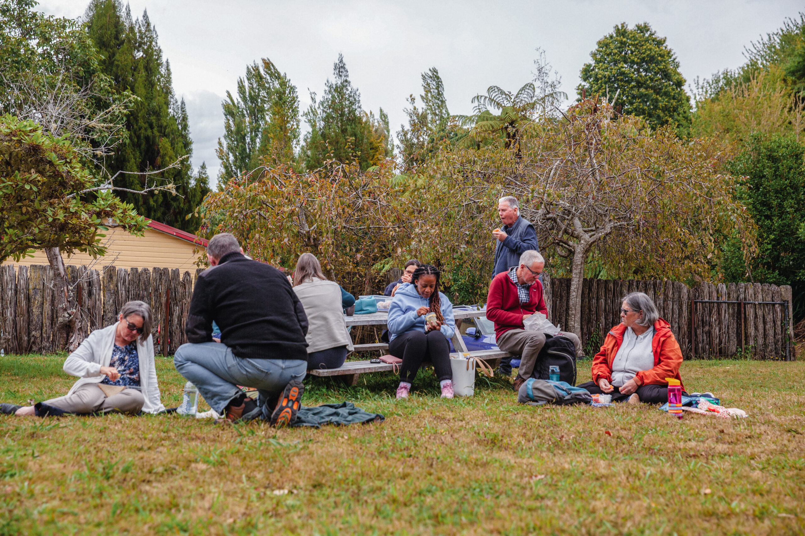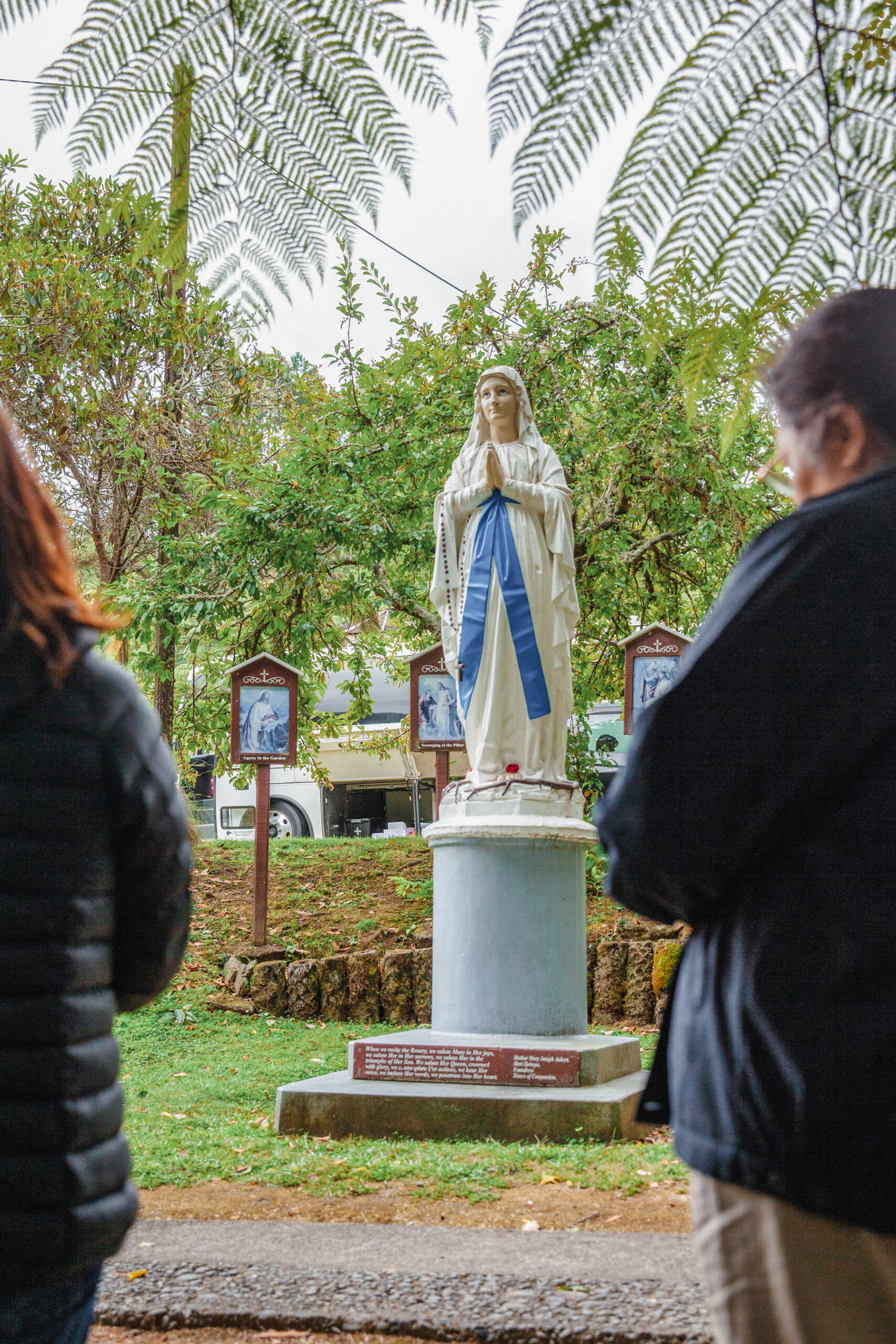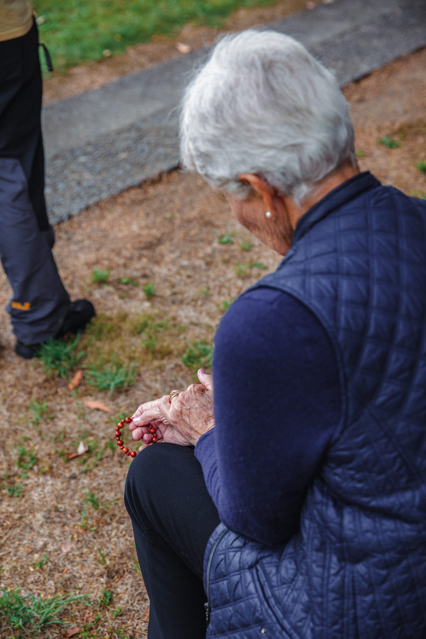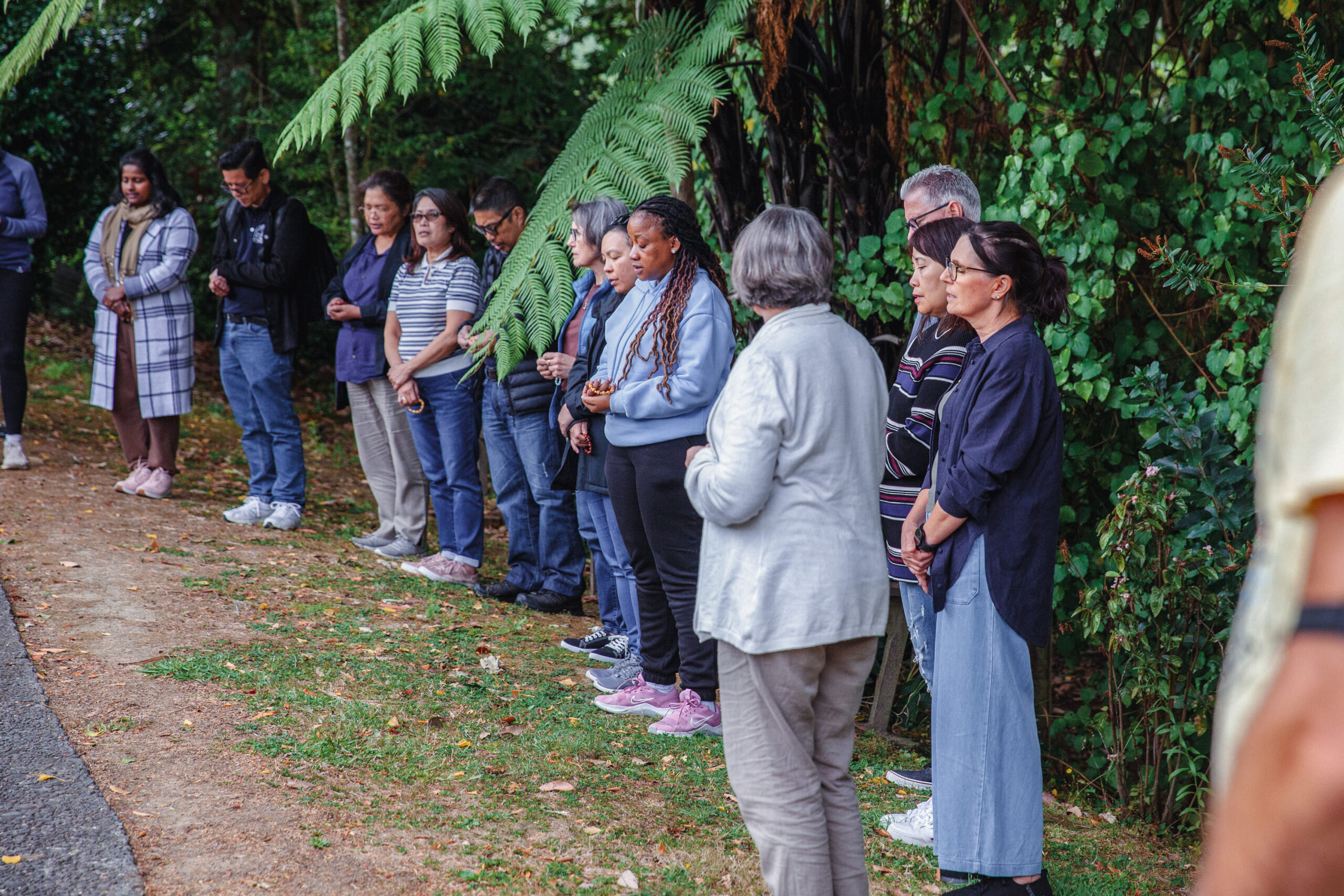 Following the Mass, Sr Litia encouraged the pilgrims to immerse themselves in the atmosphere of Hiruhārama, saying, “I can’t say anything about this place – it’s up to you to catch it.” The group then shared their packed lunches before taking time to explore the old convent, reflect in solitude, and pray. Later, they gathered in the Rosary Garden, where Bishop John led a decade of the Rosary, focusing on the Joyful Mysteries.