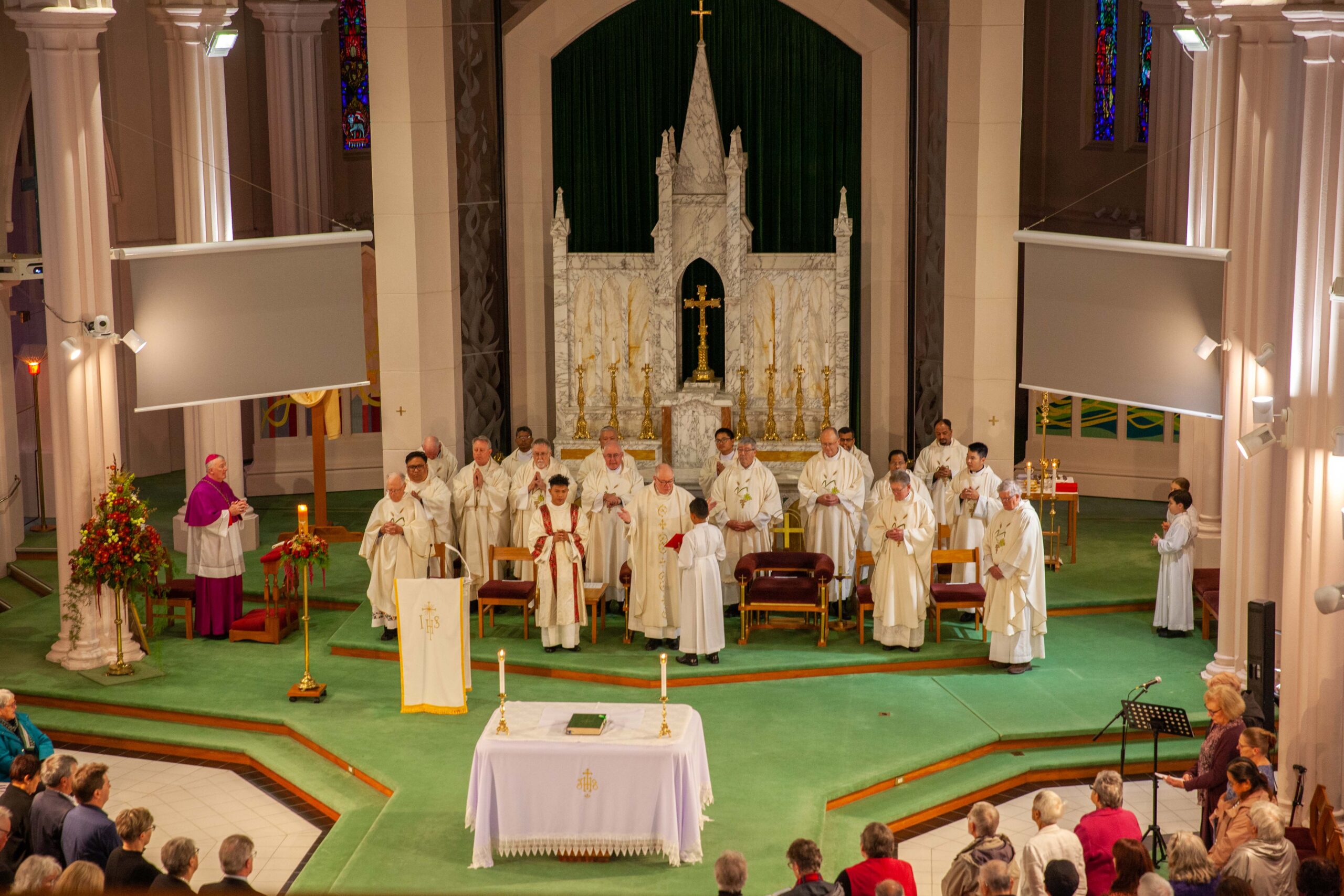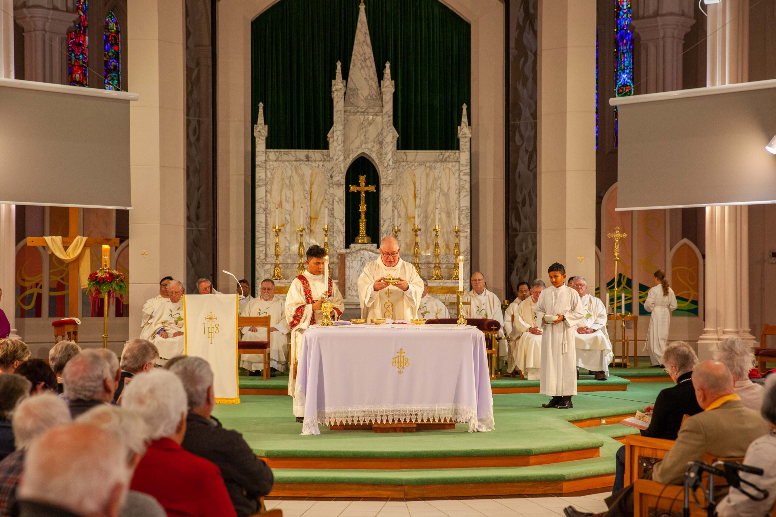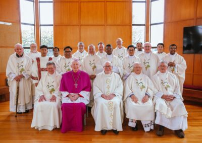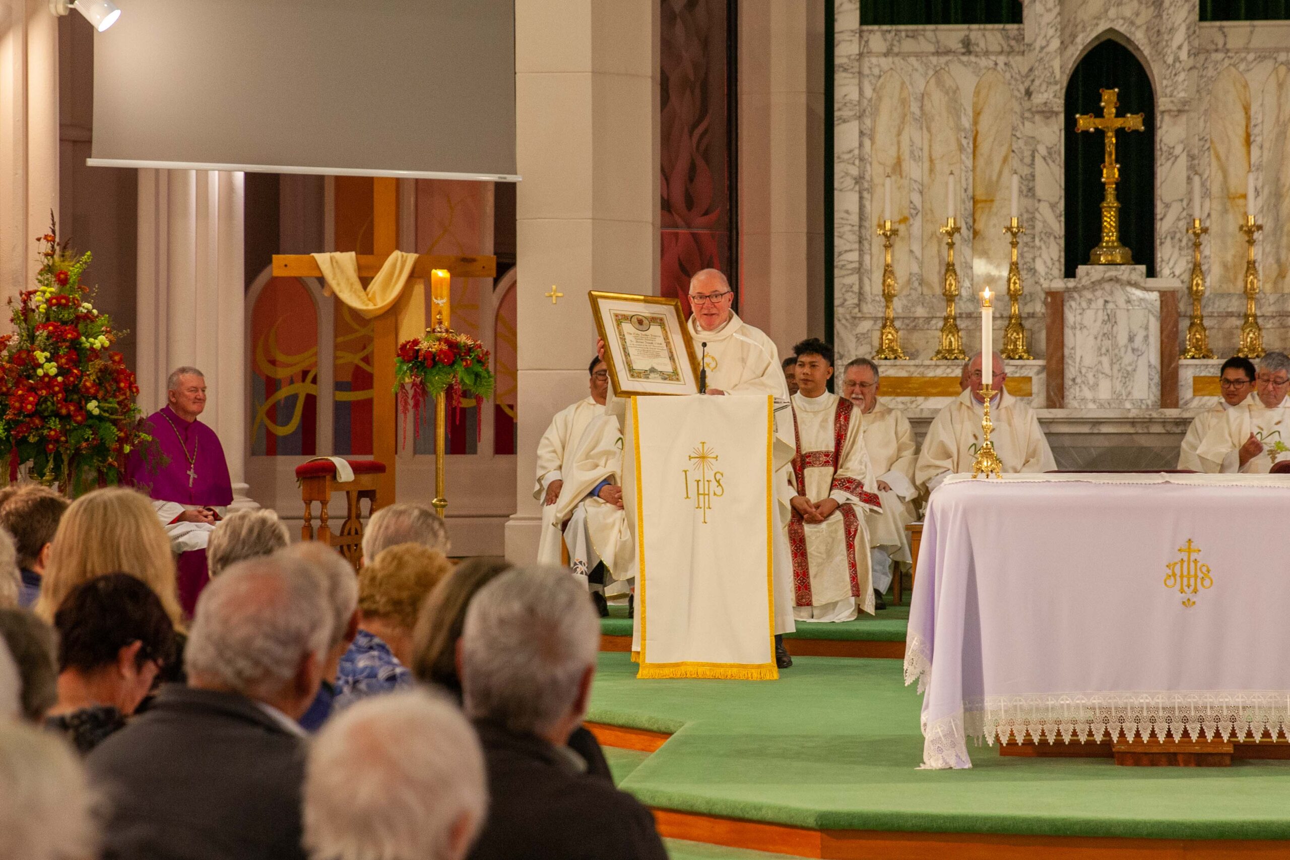 A highlight of the Mass was the presentation of a papal award by Bishop John Adams, recognising Monsignor Brian’s years of faithful service. He also acknowledged fellow Jubilarians: Fr Tom Lawn, Fr David Tonks, Fr Bernie O’Donnell (50 years), Fr Craig Butler (30 years), and Fr Nathaniel Brazil (10 years).