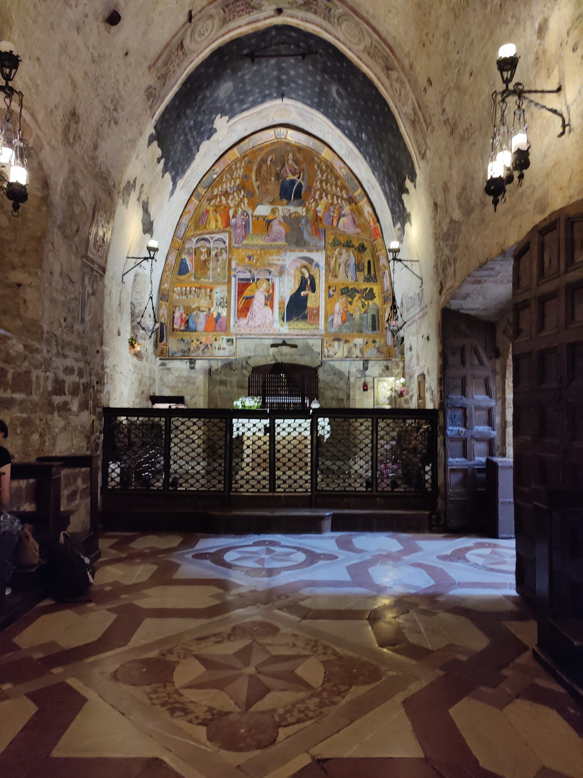 This pilgrimage site also includes the spot where St Francis died and the rose garden, where thornless roses still bloom — a place tied to legends of Francis’ penance and his profound love for creation.