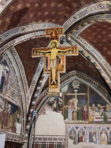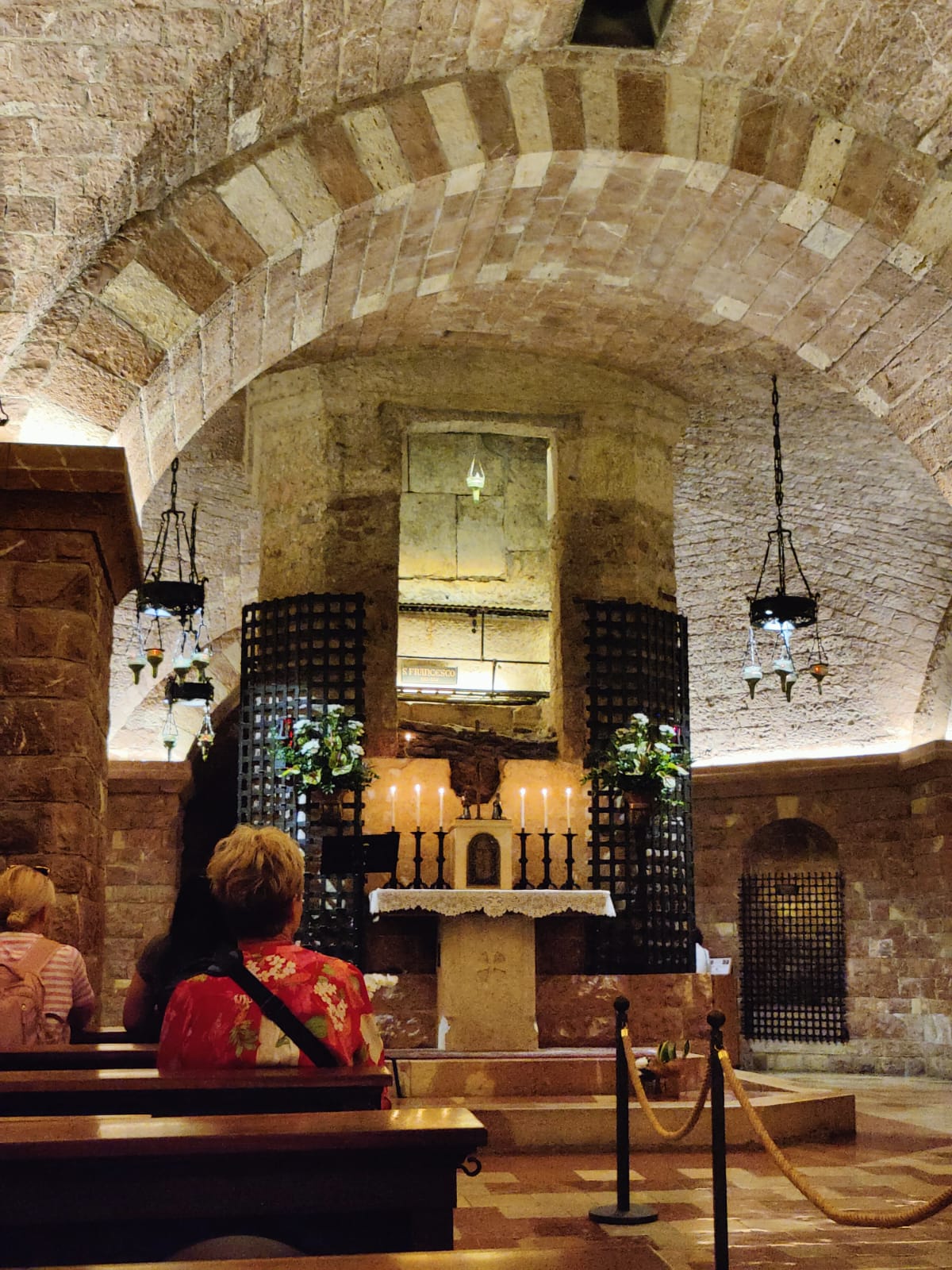 At the Basilica of Saint Clare, I encountered not only the tomb of Clare, but also the original San Damiano Cross — the very cross that spoke to Francis with the words, “Francis, go and rebuild my Church.” To stand before it was to be caught up in the still-living call of Christ: to repair, renew, and restore what is broken — starting with our own hearts. Clare’s own quiet strength, and her trust in the presence of Christ in the Eucharist, offered a steady invitation to surrender everything in love.