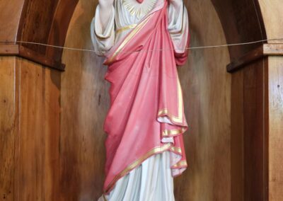 The building, made largely of timber with a hand-sawn rimu interior, was constructed by Gerald F. Harlod with the help of a Mr. Woods. Fundraising events, such as a Queen Carnival and regular barn hops, contributed to its completion. Prior to the church’s construction, Masses were held only once or twice a year in the local Foresters Hall. After the church opened, services increased to four times annually.