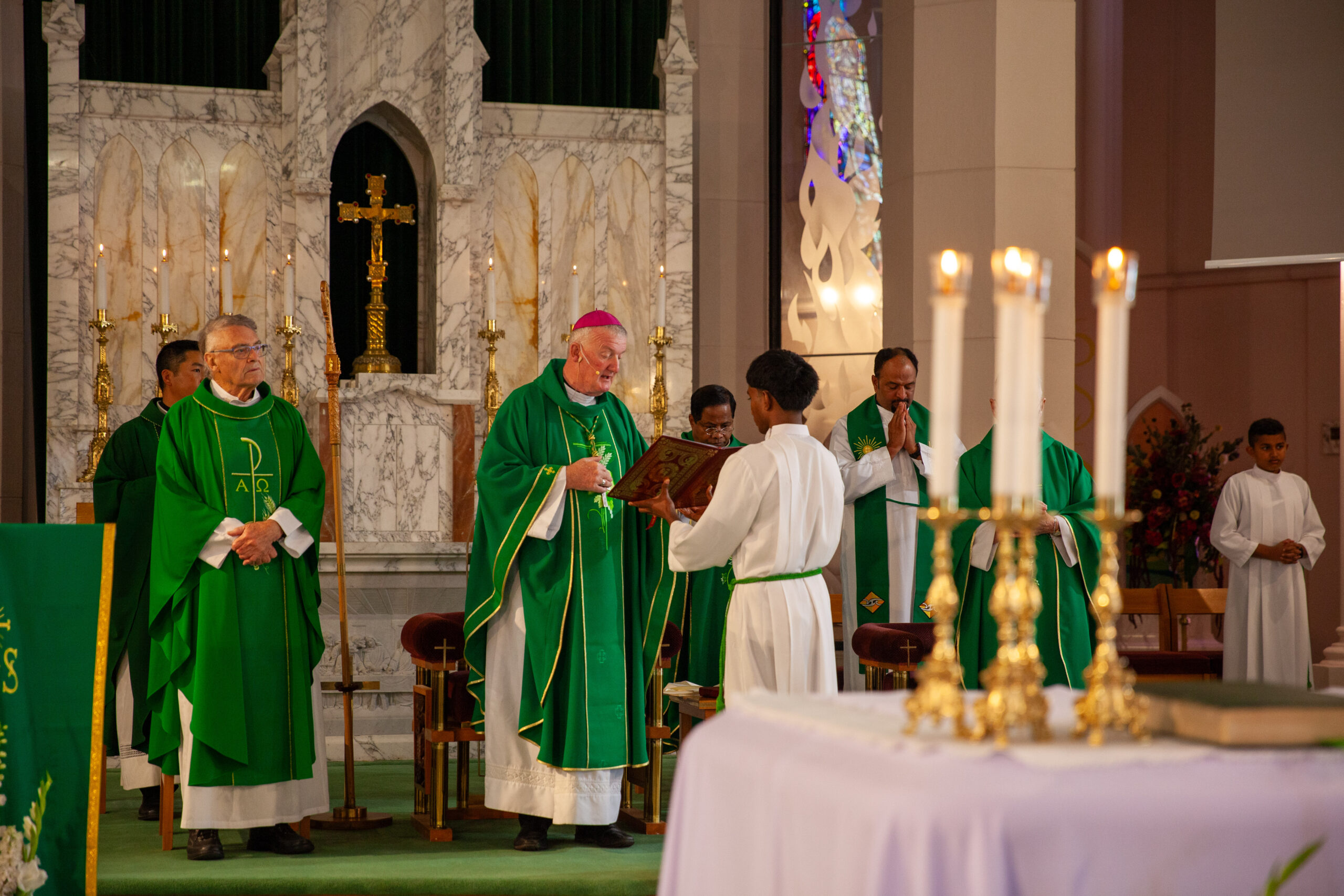 A special moment followed the Prayers of the Faithful when Fr Vui invited all parishioners who had volunteered for ministry roles in the Cathedral and Our Lady of Lourdes communities to stand for a commissioning prayer. Bishop John blessed them, sending them forth to serve in the year ahead — a tangible sign of renewal and shared mission within the parishes.